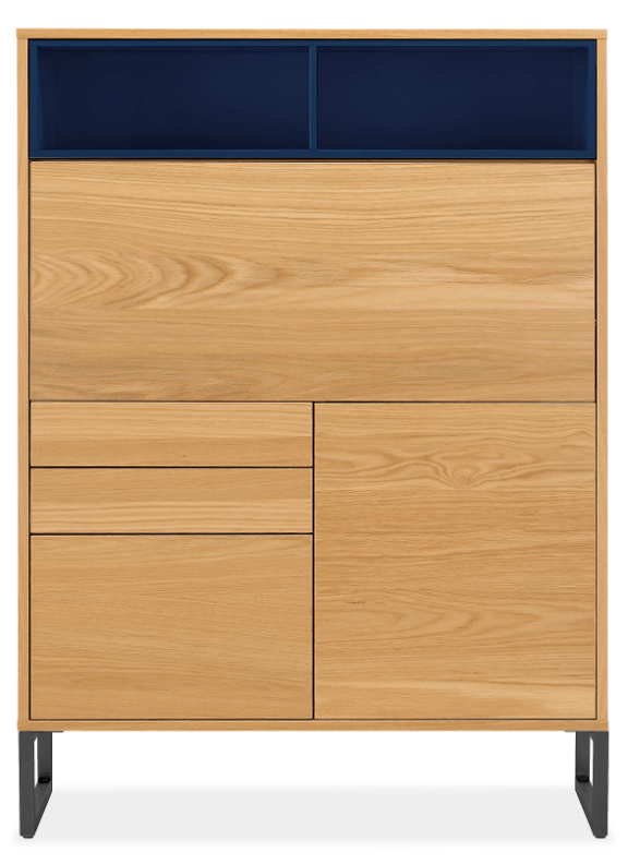 Infuse color into your space with this office armoire, a modern storage solution with a drop-down work surface. The insert adds a pop of color to the design, while the sturdy steel and wood construction highlights the beauty of the materials.