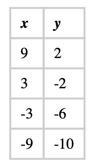 Jada has $24 to spend on games and rides at a carnival. Games cost $4 each, and rides are $6 each. She uses the equation 4x + 6y = 24 to represent the relationship between the number of games, x, and the number of rides, y, that Jada could do if she spends all of her money.