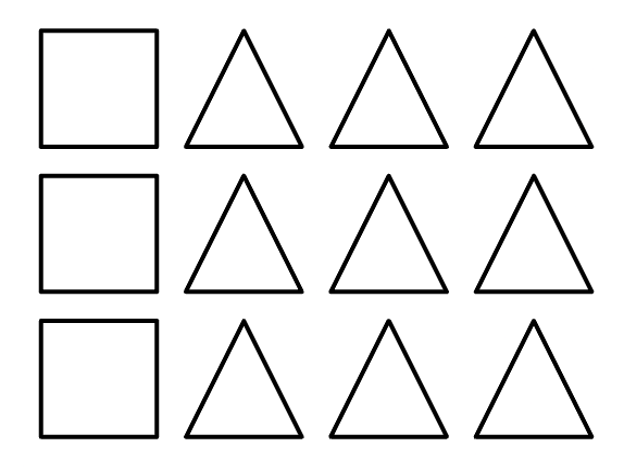 What is the ratio of squares to triangles?