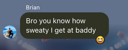 Bro you know how sweaty I get at baddy