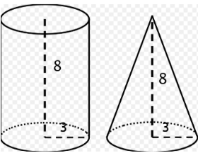 Emily says the cylinder and the cone below have the same volume because they have the same radius and height. Do you agree or disagree? Support your answer by finding the volume of each. If needed, round your answers to the nearest hundredth.