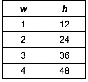 The table shows the relationship between the age of a plant in weeks, w, and the height of the plant in cm, h. Write an equation to represent this relationship.