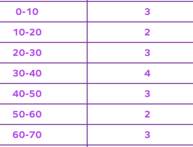 You can't have the same number in 2 intervals. It should be 0-9, 10-19, 20-29 etc.
