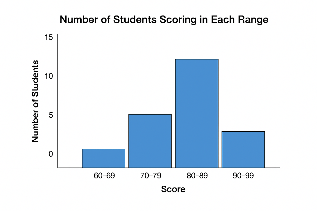 A normal distribution of test scores has a mean of 80, a standard deviation of 5, and 100 total students.