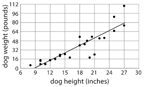 Make the best prediction about the dog's weight when the dog's height is 24 inches?