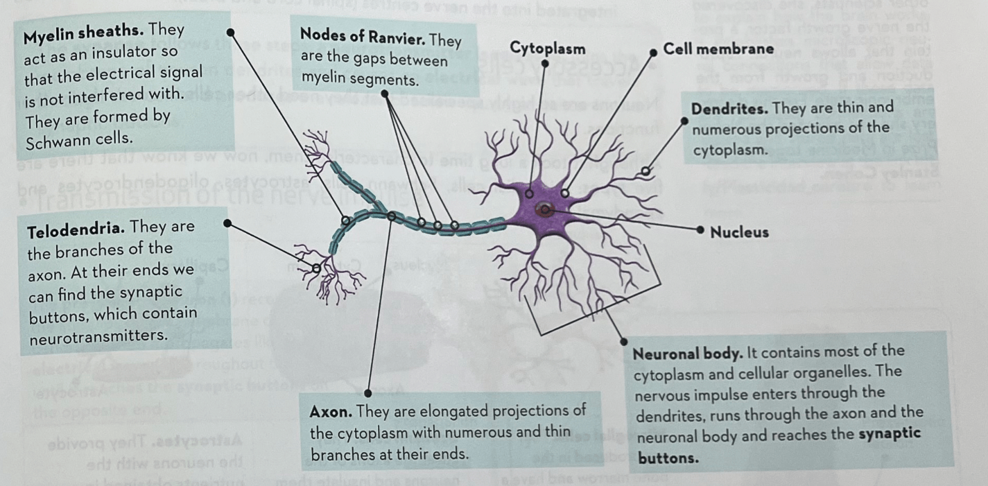 A neurotransmitter is released, joins the membrane of neuron dendrites and causes an electrical wave that travels through the cell and produces the release of a new neurotransmitter in the synaptic buttons.