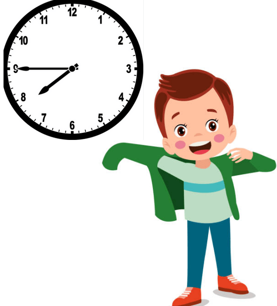 Alex puts on his coat at 7:45 AM.