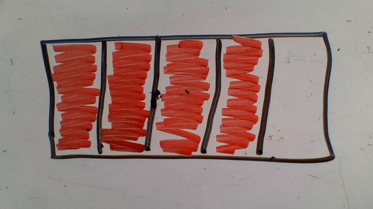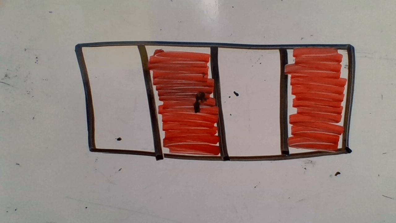Draw a fraction with a numerator of 2 and a denominator of 4.
