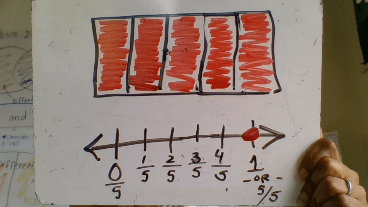 5/5 or 4/4 or andy fraction that has the same number for a numerator and denominator.