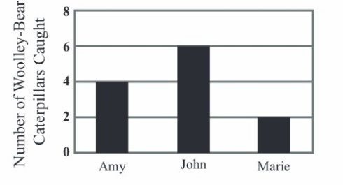 Look at the bar graph. How many more woolley- bear caterpillars did John catch than Amy?