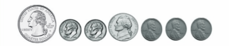 Sarah has 2 quarters, 3 dimes, a nickle and 4 pennies. How much money does she have?