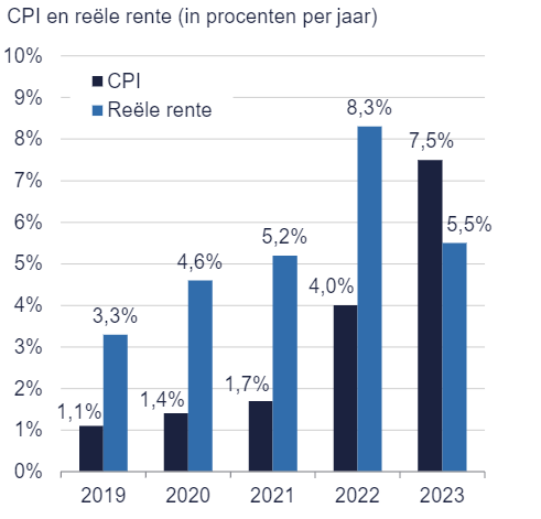 Bereken voor 2023 de reële rente.
