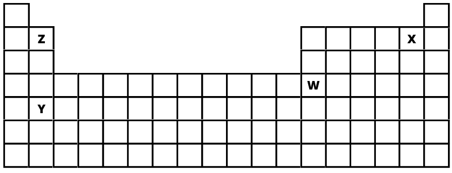 ¿Cuál de los siguientes elementos representados con las letras X, W, Y y Z tendrá mayor electronegatividad?