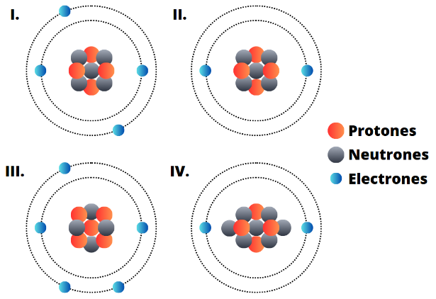 Según la anterior información. ¿Cuáles de las siguientes representaciones son átomos neutros?