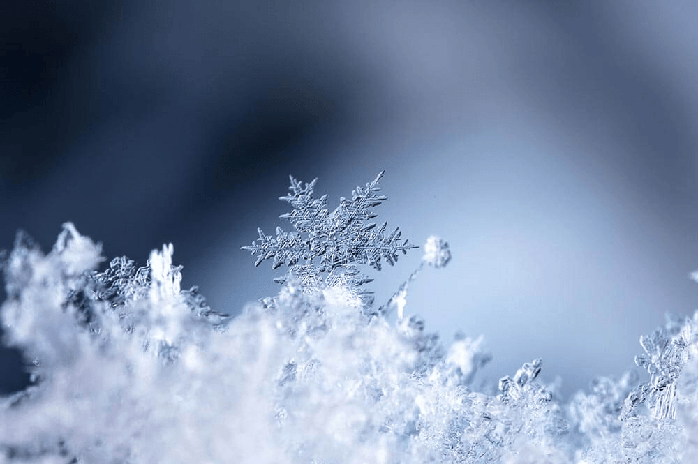 Frozen water that falls from clouds. In the form of flakes.