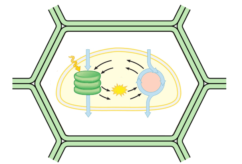 Chlorophyll is contained within these structures, which look a bit like a stack of green pancakes inside the chloroplast.