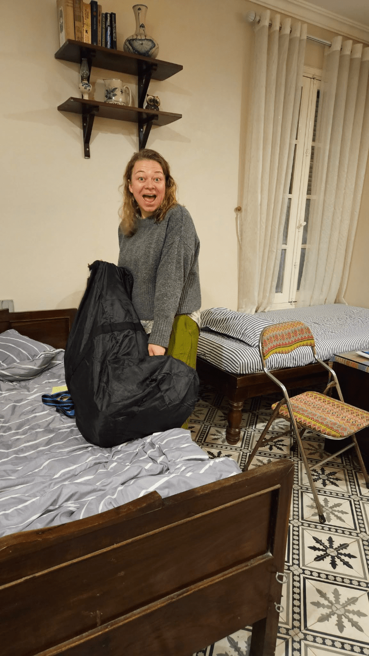 Maja har fået sin rygsæk på deres rejse til Vietnam, lige inden de skal videre rundt.