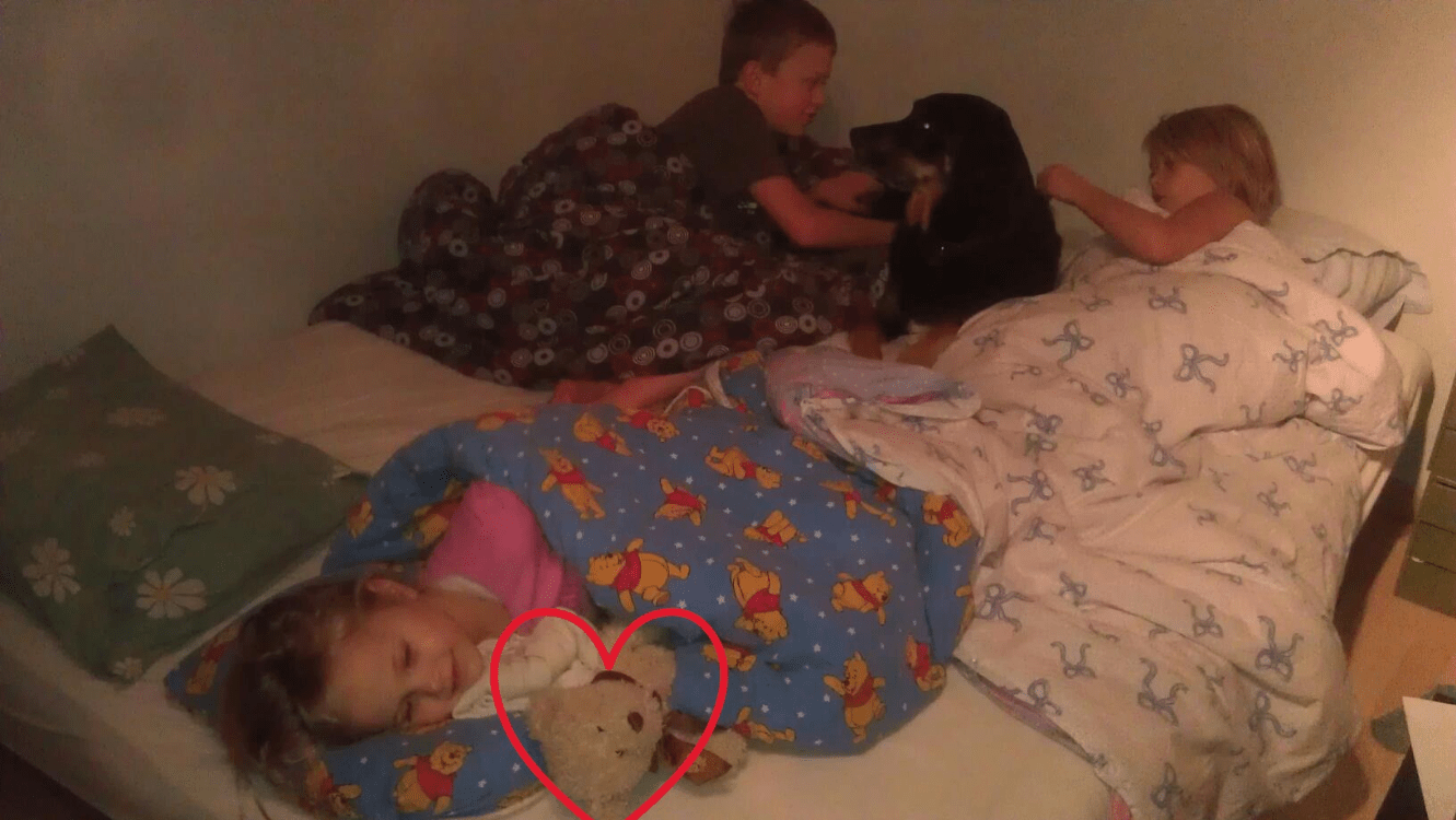 Hvad hedder Matildes bamse, som ses på dette billede?