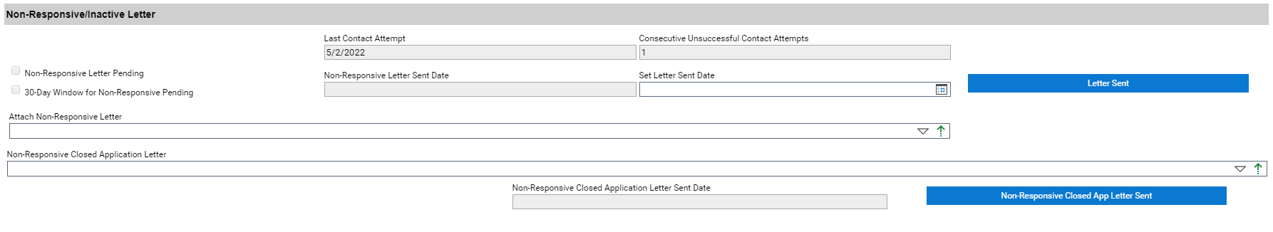 Three unsuccessful contact attempts were recorded for app XYZ. Unsuccessful attempts were made on 10/15, 2021, 11/1/2021 and 4/29/22. Should this case be made non-responsive? Why or why not?