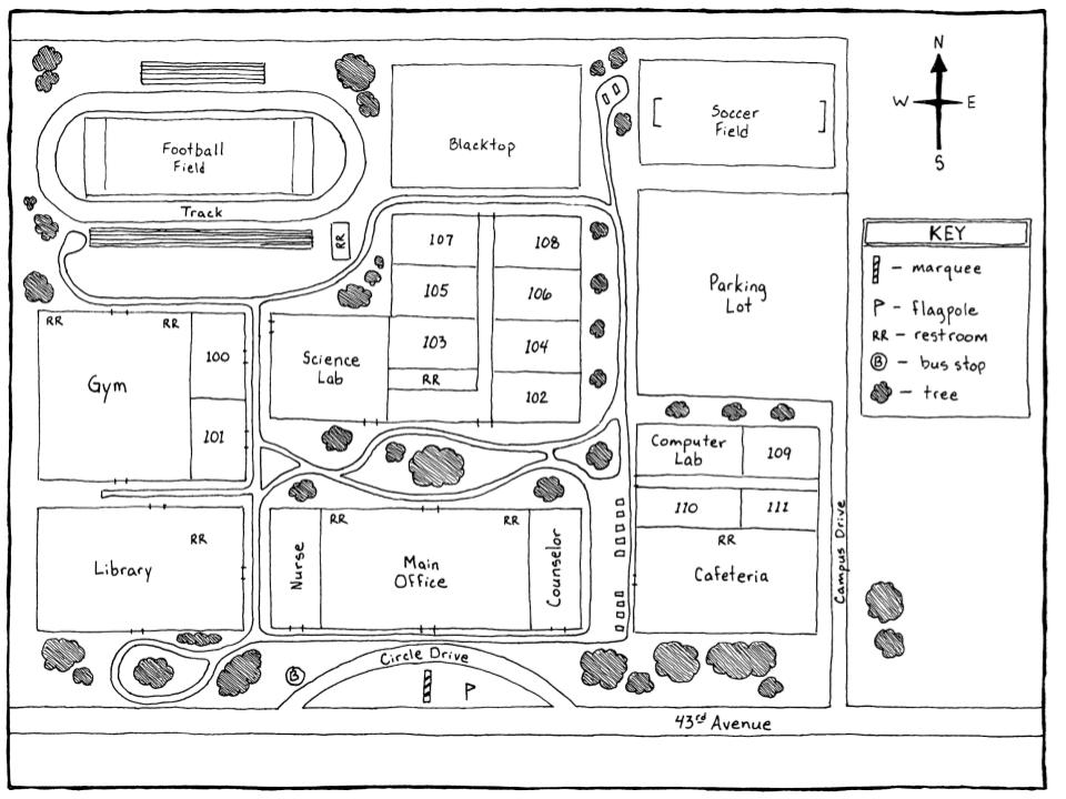 Write directions how to get to the soccer field from the gym.