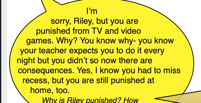 B.  Riley was punished because he did not eat his vegetables at dinner.