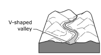 Which of Earth's forces (agent) is responsible for creating the landform below? (V-shaped valley?