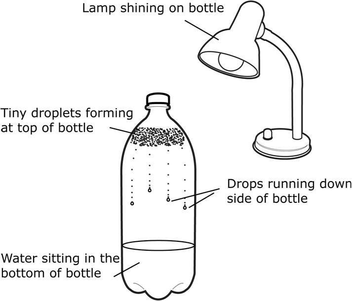 Condensation. The air in the room is warmer than the bottle; when the air (gas) comes in contact with the bottle it turns back into a liquid
