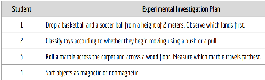 Students plan the following investigations to test the force on an object. Which two students plan investigations that test only one variable?