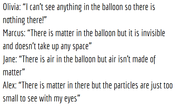 4 students are having a conversation about a balloon they see floating through the air. Which student is correct?