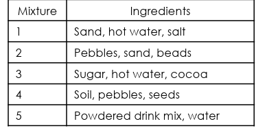 Which mixture(s) do all of the ingredients keep their physical properties?
