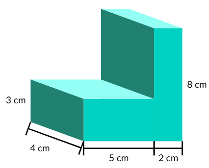 This figure is made of 2 rectangular prisms. What is the volume of this figure?