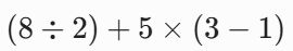 Add 3 and 5, then multiply the result by 4, and subtract 2.