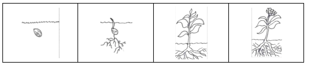 Detailed diagram of the life cycle observations of the bean plant.