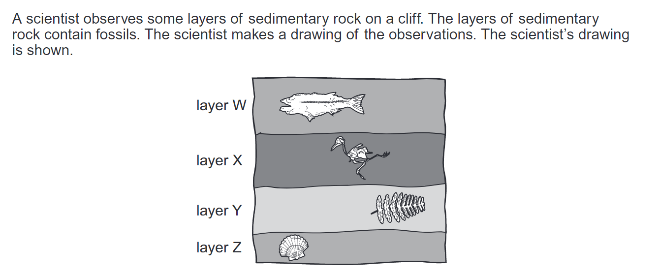 - A marine environment changed to a terrestrial environment from layer Z to layer Y because shells are shown in layer Z and plant leaves are shown in layer Y