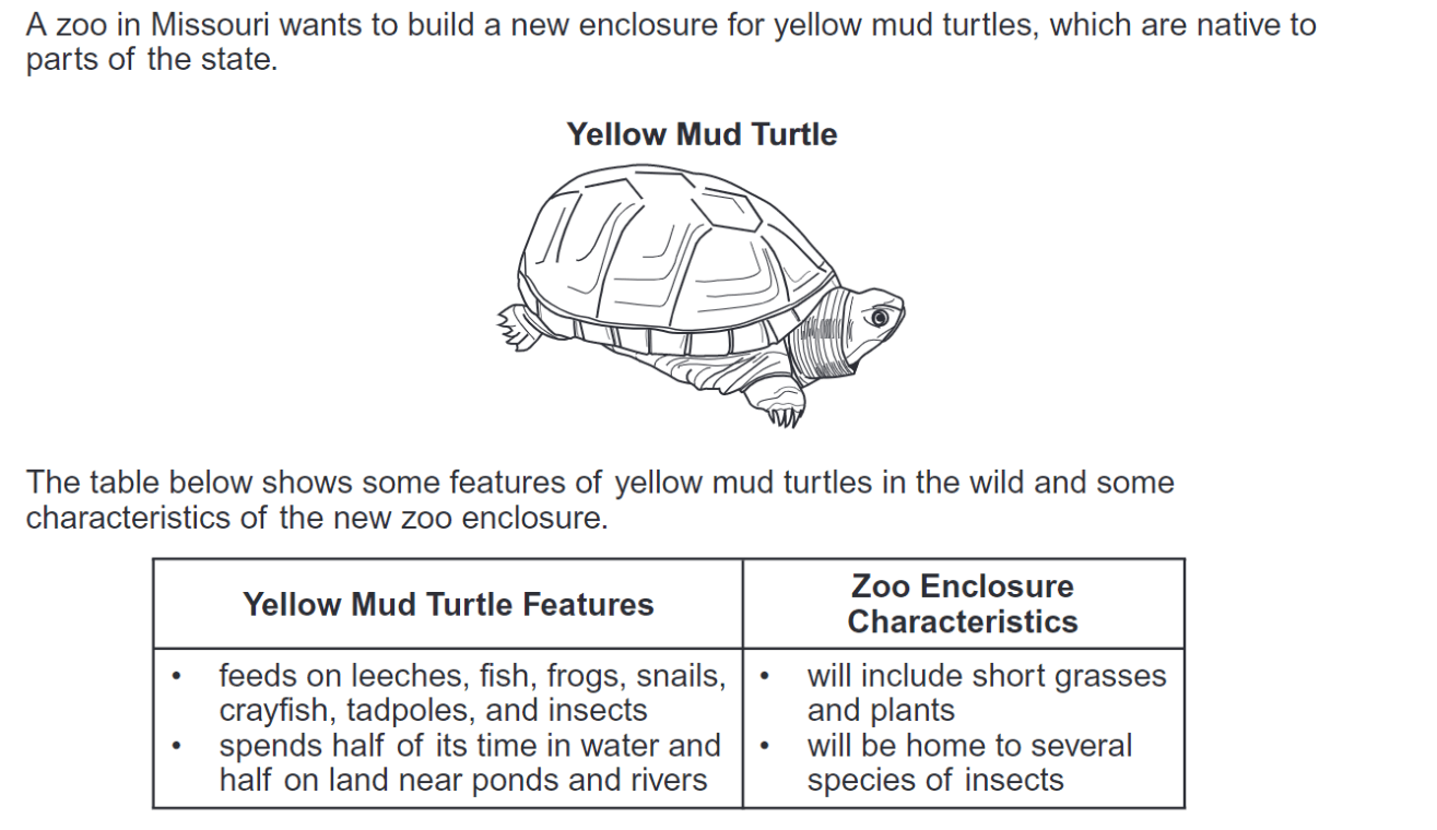 - Zoo enclosure doesn't have water for the turtle's habitat
