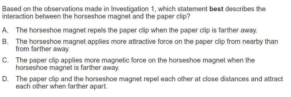 B. The paper clip moved because the force exerted by the magnet was close enough to the paper clip to move it.