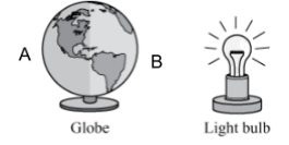 A student wants to model what causes day and night on Earth. The student uses a globe to represent Earth and a light bulb to represent the Sun. Pictures of the globe and light bulb are shown below.