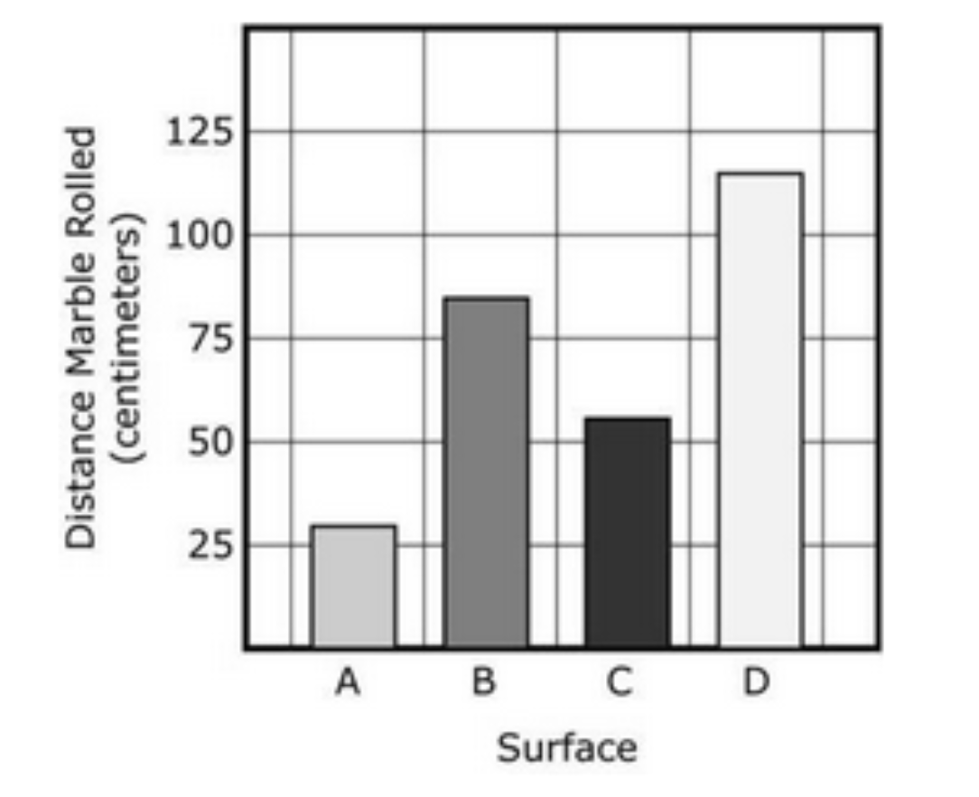 Using the graph below, order the surfaces from greatest friction to least friction.