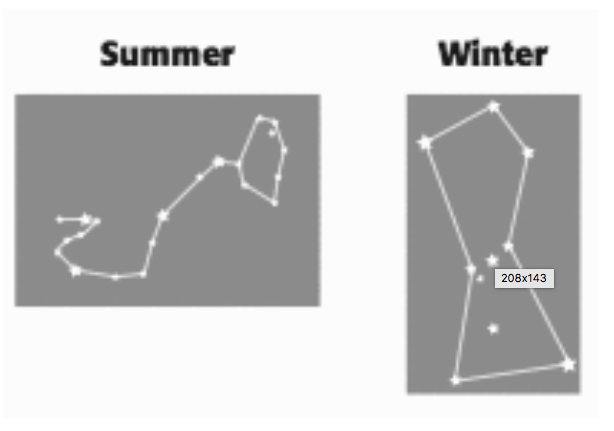 Sara Dre groups of stars she saw during different times of the year.  Her drawings are shown below.