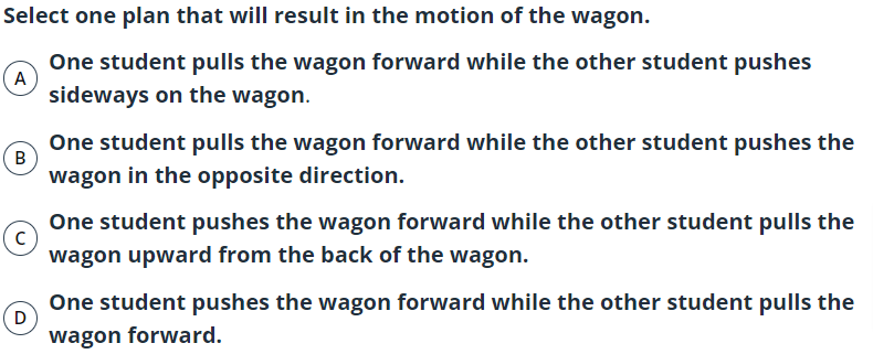 Two students are discussing different ways to move a wagon. filled with bricks.