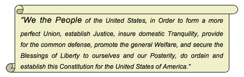 in Order to form a more perfect Union, establish Justice, insure domestic Tranquility, provide for the common defense, promote the general Welfare, and secure the Blessings of Liberty