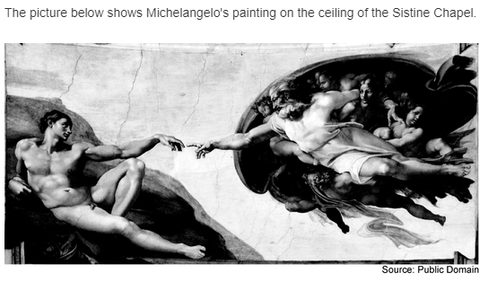 Based on the picture above, what universal theme is depicted in Michelangelo's painting?