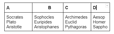 A report about ancient Greek contributions to philosophy would MOST likely discuss the people listed in which column of the table?