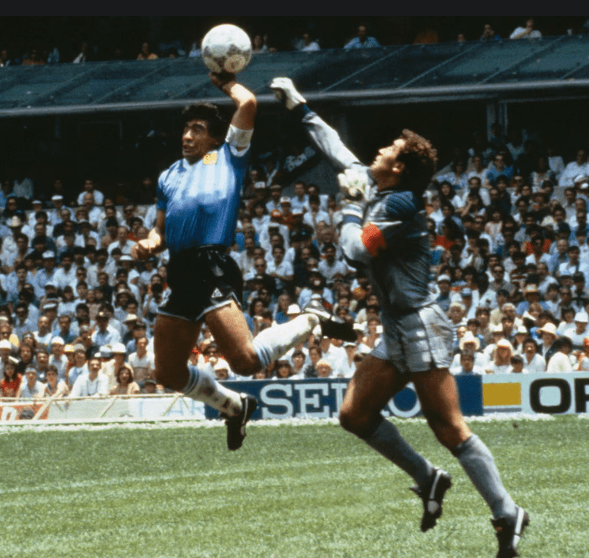 One of the greatest number 10s of all time, Diego Maradona, was a prolific striker and still considered by some to be the greatest Argentinian player of all time. In the 1986 World Cup semi-final against England, Maradona scored what was voted as the goal of the century. But 4 minutes before this, he scored another iconic goal that also goes by this name. This controversial goal helped Argentina breeze past the quarter-finals and eventually win the 1986 World Cup.
