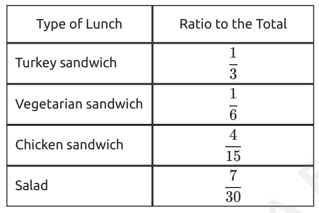 The table shows the ratio of people who ate a certain type of lunch to the total number of people who ate lunch.