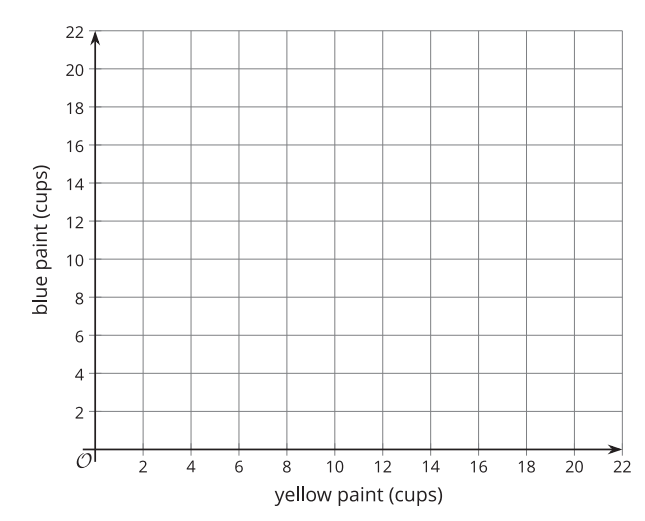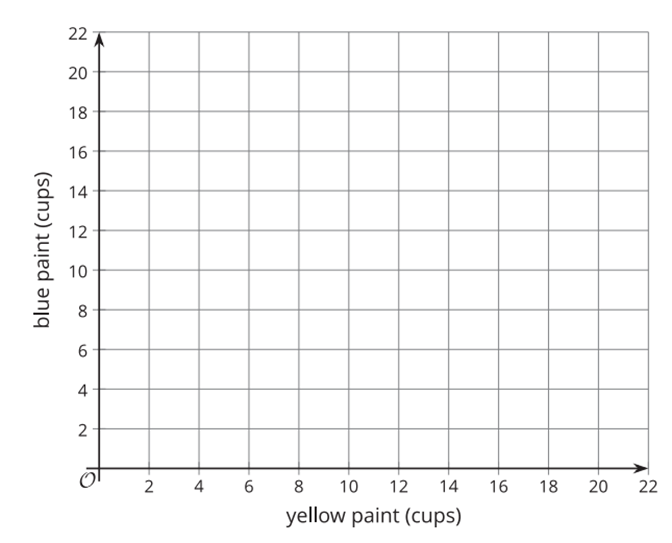 How much blue paint does Andrew need if he uses 15 cups of yellow paint?