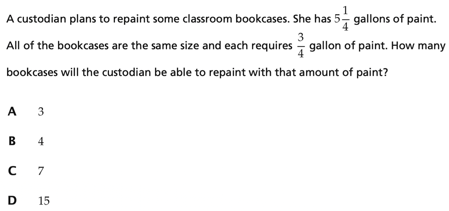 Divide the amount of paint by the amount of paint needed per bookshelf.