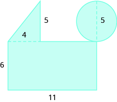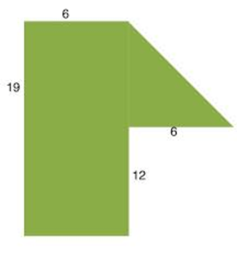 The area in inches of the compound shape pictured below.