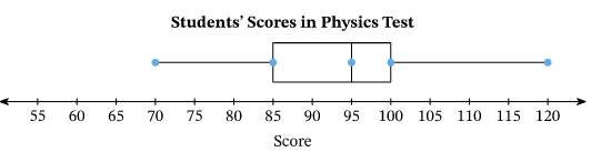 D. 50% of the students scored between 95 and 120 on their Physics test.