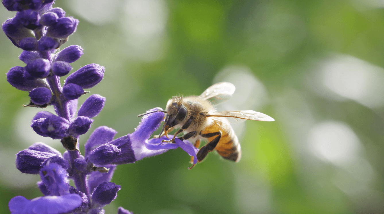 Which kind of ecological relationship exists between bees and flowering plants?